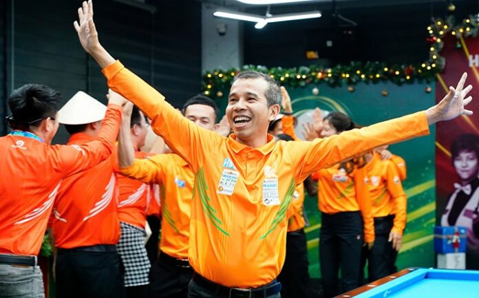 Set đấu định mệnh diễn ra căng thẳng đến “thót tim”. Hai tay cơ liên tục bám đuổi từng điểm số, mỗi đường cơ đều như ngàn cân treo sợi tóc. Nguyễn Chí Long thậm chí đã chạm tới “championship point” với tỷ số 11-10. Cả nhà thi đấu như ngừng đập, mọi ánh mắt đổ dồn vào bàn bi-a. Nhưng rồi, trước những thế bi tưởng chừng “bó tay”, Vy Ngọc Châu đã làm nên điều kỳ diệu! Anh tung ra 2 siêu phẩm mãn nhãn, kết thúc bằng một cú đánh trái tay đẳng cấp để “knock-out” Chí Long với tỷ số 12-11. Một pha “lật kèo” không tưởng, một khoảnh khắc lịch sử giúp Team Thế Giới Billiards vỡ òa trong men say chiến thắng!