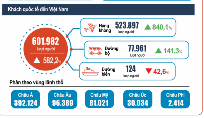 Tăng trưởng vượt bậc về lượng khách quốc tế