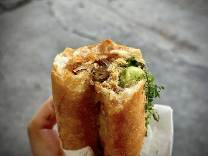 Nghe danh bánh mì miến đã lâu, Travip không giấu nổi vẻ háo hức. Khác xa với những người anh em bánh mì truyền thống, bánh mì miến ở đây lại mang một “linh hồn” rất riêng. Thay vì thịt nguội, pate, xúc xích, phần nhân lại là miến xào mộc nhĩ, giá đỗ, thêm rau thơm, dưa chuột và chút ruốc thịt lợn. Thậm chí, bạn có thể yêu cầu thêm trứng rán nếu muốn ‘nâng cấp’ độ đã miệng.